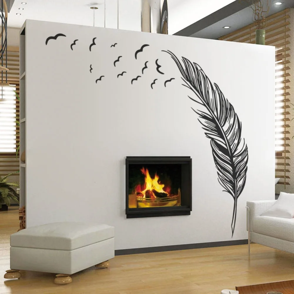 REVIEW TOP SELLER Free Shipping Creative Feather Vinyl Wall Decal Feathers Flying Birds Mural Art Wall Sticker Living