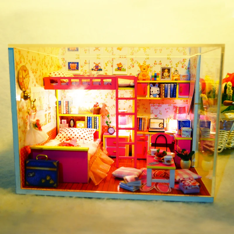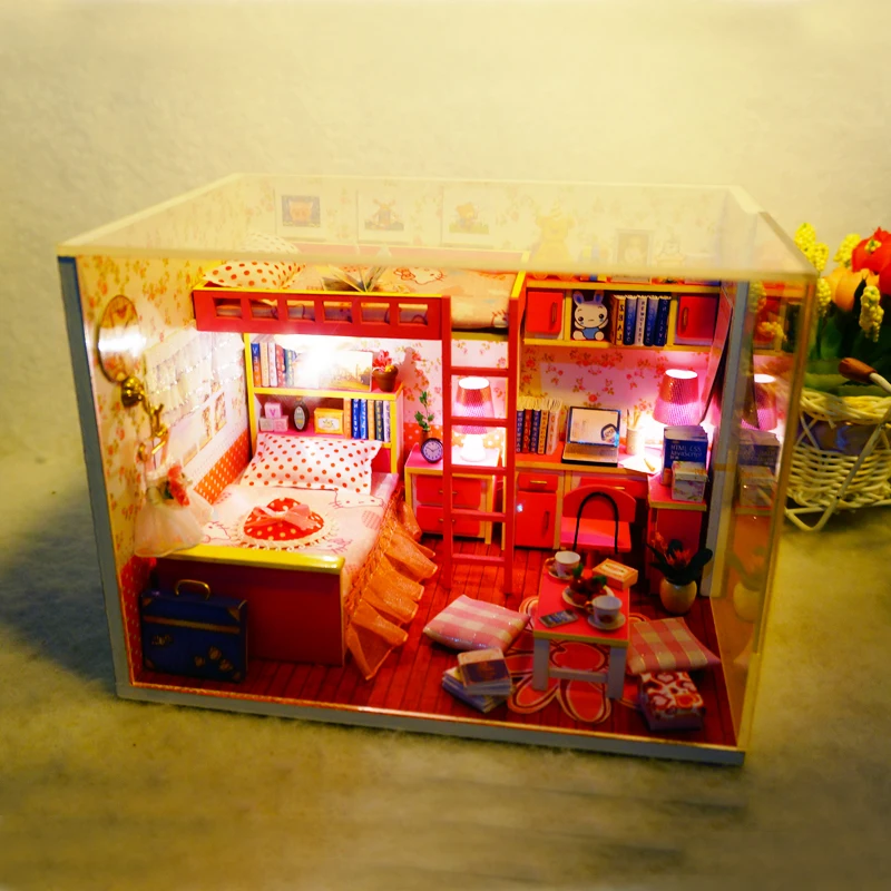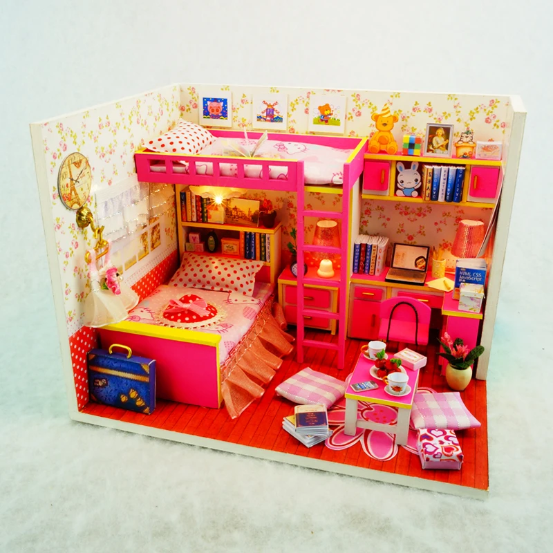 DIY 3D Wooden Building dollhouse Miniature Assemble Puzzl Kits with Funitures Toys For MM/GG Festiv